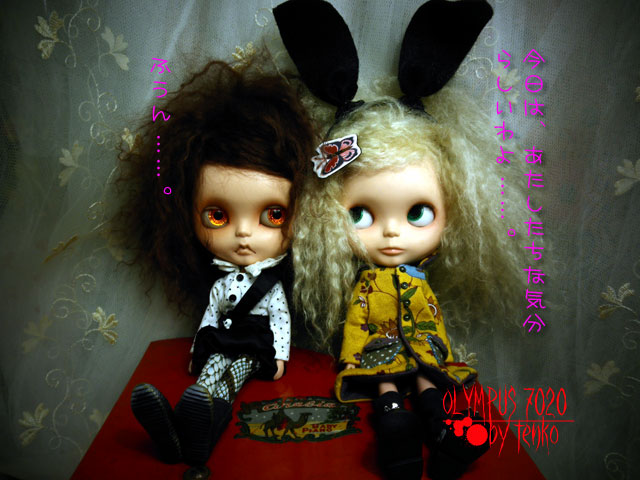 いざ、お着替えさせて、写真をとるぞ〜って 事になると、ちゃぁ〜んとイイ顔をしてくれる 寛大なヤツだ。 昨日もひっさびさだったのに、相変わらずの素敵さを 見せてくれた。 なので、甘えちゃう。 今日は、呪羅の全身を撮るぞ〜って思ってたんだけど、 なんか、寒いからか? ブライスな気分になったのだった(;´▽`A`` 許せよ! 呪羅! しかも、デフォっこじゃなくて、ちょいと「クセ」のある二人。 ベベとザジ。 クリスマスツリーを(小さいけど)飾ったのだけど、 ツリーの飾りを欲しそうに見つめる眼差しあり。 しかも、「欲しそう」どころか、遊んでますし……(;´▽`A`` なので、ツリー画像、撮りたいけど、今の所なし。。。(⌒o⌒;A PR |