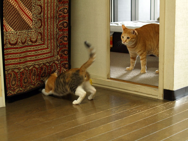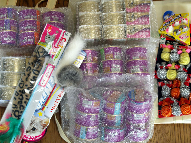 落札者さまそして入札をしてくださった皆様、お疲れさまでした。 見守り隊のみんなもありがとぉぉぉヾ(@⌒▽⌒@)ノ 蓮子は、またご縁があって、前回の蝶子をお迎えしてくださった方の所へ行く事になりました。 ほんとに、ご縁とは嬉しいものです♪ また、がんばるぉぉぉ〜〜! と、「力」を頂きました。 ありがとうございましたm(_ _)m ************** で、昨日nanaちゃんから救援物資が届きました(〃⌒ー⌒〃)∫゛ いやー、うちのヤツら、食いまくってるので、エンゲル係数がドーっと急上昇の我家。 旦那の入院手術なので物入り? とnanaちゃんがヘルプの手を差し伸べてくれたのであります(笑) す、すごい量でしょ!!!! びっくり。。。おもちゃも一杯なのでありますヾ(@⌒▽⌒@)ノ さっそく、あじゅこはオレンジのネズミが気に入ったみたいで。 肛門丸見えだったりするのにも、かまわず、探してます♪ あじゅこのジャレるのを暖かく見守っていたみゆ坊も、辛抱たまらず、ジャレジャレ! そして、シャッター速度がついていきませぇ〜ん! (⌒o⌒;A nanaちゃーん、ほんとにありがとぉぉ!! この後、羽根のついたぶんぶん振り回すおもちゃに二人とも、大興奮。 あまりにも二人とも興奮するので、そのおもちゃは1日2回30分ずつと決められることになりました。 その他は、タンスに格納することに(笑) nanaちゃん、感謝、感謝です♪ PR