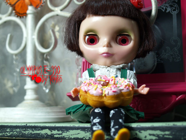 そうそう、幼いを通り越して、 なんか、不思議なヴィンテージドールだ(o^ O^)シ彡☆バンバン 笑っちゃうよねぇ〜! 男の子にもなれそうで、ほんとに、 ヘアカットするたびに楽しませてくれる ある意味、魅惑のドールだわん!! このなんだか幸せそうな顔は、 前髪の幅が広かったためと思われσ(^_^;) ルジュの時、もしも自分でするならば。。。。 狭いところから広げないと、 赤毛のアメコ2号ができちゃったら 笑え過ぎるから。。。気をつけよぉ〜。。。(;´▽`A`` そして、アメコ、急に甘い物好きにも なった感じでねぇ〜(笑)