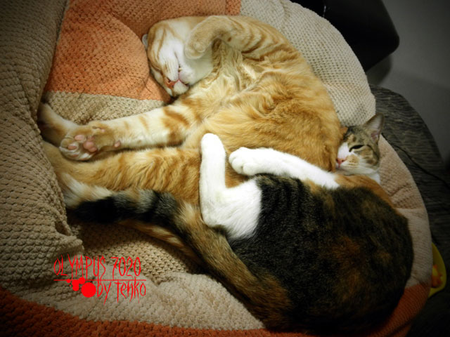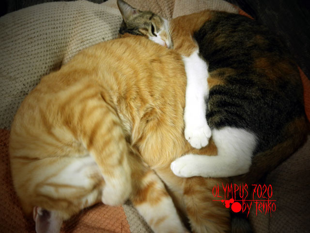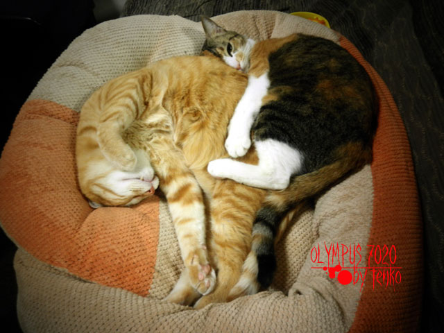 みゆあじゅは、こんな「猫だんご」になっている。