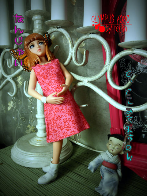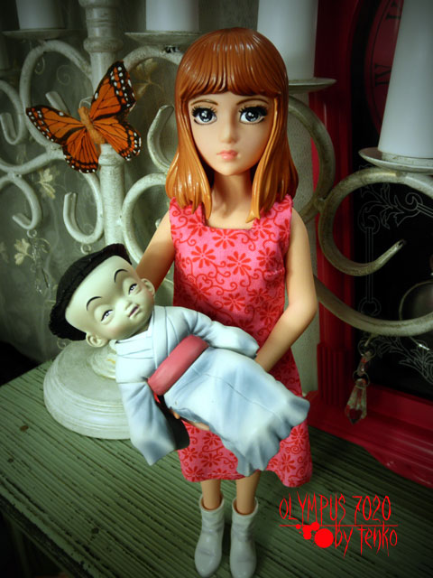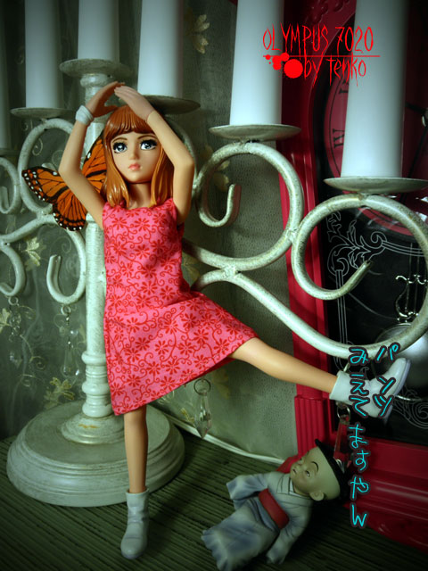まことちゃんをいつもお迎えしようと思っても どのまことちゃんにするか、 どうせお迎えするなら、プレミア付いてる 植毛の子がいいかなぁ〜とか。 でも、やぱそれは高嶺の花だったり 状態のいい子が居なかったり……。 で、今回「おろちとたまみ」 お迎えしてみました。 たまみを抱っこするための特別仕様の手のために 手を上げるとそんなに太陽が眩しいのか? と聞きたくなるようになってしまったり もう片方の手は何かを受けているのか?? と聞きたくなるようになってしまったり なんかバレリーナのようになってしまったりする、おろち……。 お顔もすごくアニメ顔だ<(;~▽~) でも、お着替えができて、ブライスのロングパーカーを着たり たまみ「もうちょっと暗いムードのあるやつ着せてやりなはれ」 と、たまみに言われて、黒ドレスを着せてみたりする が、そのヘアスタイルのため、髪の下をこのドレスの襟の所の布が通らず 後ろが閉まってなかったり で、極めつけは、首は動く仕様になっているのにもかかわらず その硬い髪が肩まであるので、首が回らず 呼ばれても、腰から回るため、あさっての方向を向いてしまったりする おろち……。 しかも、足は、可動式なのに、座ることは不可能とみられる。。。。 それでも、なんか気に入った、おろち。。 そして、たまみはいい味出してます(笑) が、私、恥ずかしながら「おろち」読んだことも、 映画を見たこともありません(爆) え? ほんとに、楳図先生の大ファンなの???? ええ、そうですとも♪ なので、古本を買いにヤフへ走りました。。。。゛(ノ‥)ノ スケート、ヨナがダントツな勢いだねぇ〜。 がんばれ、真央ちゃん!!!! PR |